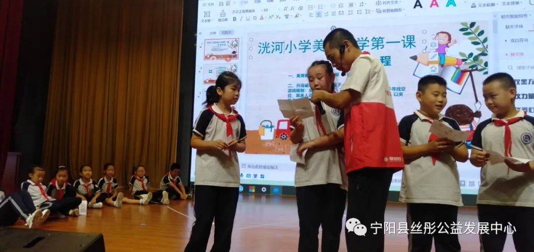 也很高兴能在洸河学校进行美育相关工作的沟通交流中,学校予以此项工作的重视,特别邀请丝彤公益社工以开学美育第一课的形式来到洸河学校和我们三年级级部近400名老师同学们一起开启一起寻觅艺术追求美的旅程。